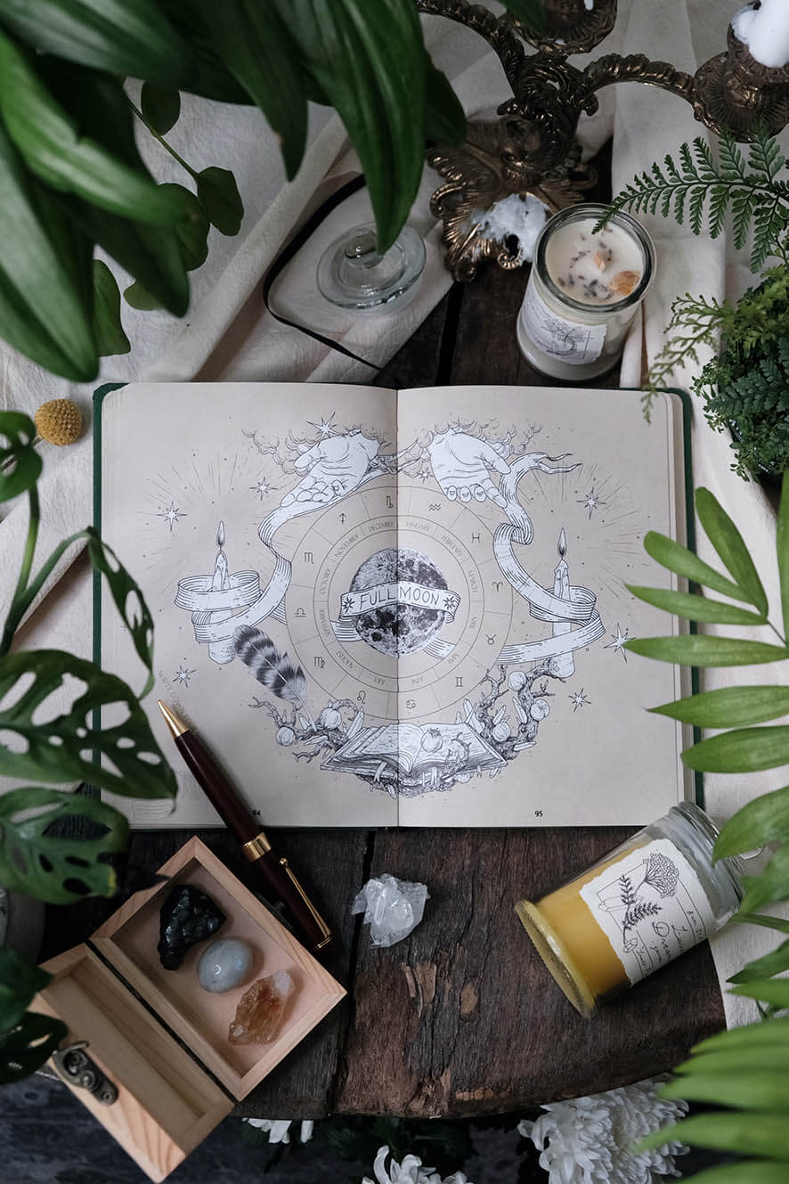 INNER PLANNER 系列少不了的月相許願環節,由「不具名場所」繪製專屬新/滿月許願圖騰,一翻開頁面就沈浸在魔法氛圍中。