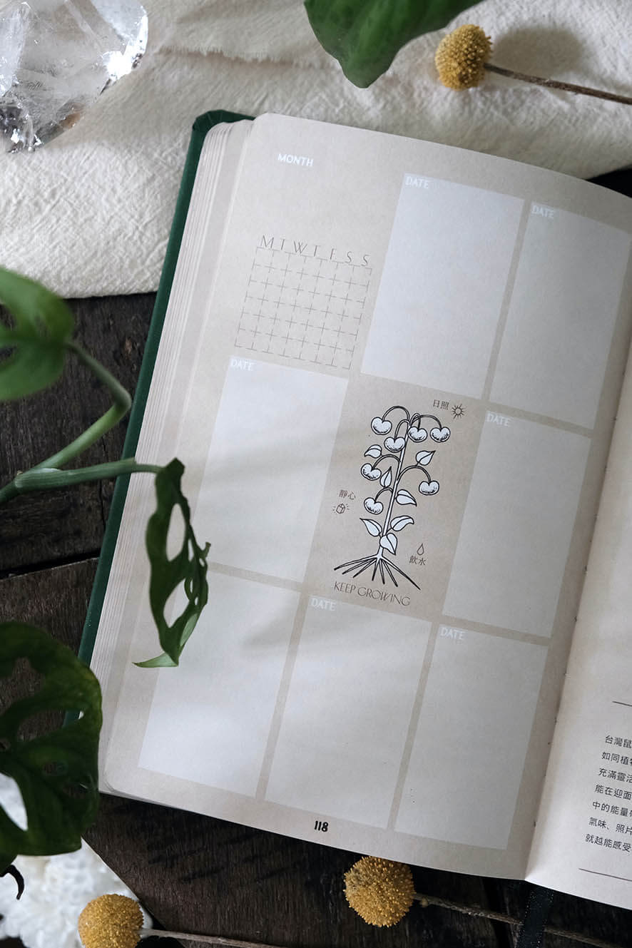 不同的週間扉頁還有「與植物連結」方法,豐富你與植物的相處方式,說不定能對如何照顧自己產生新的洞見。
