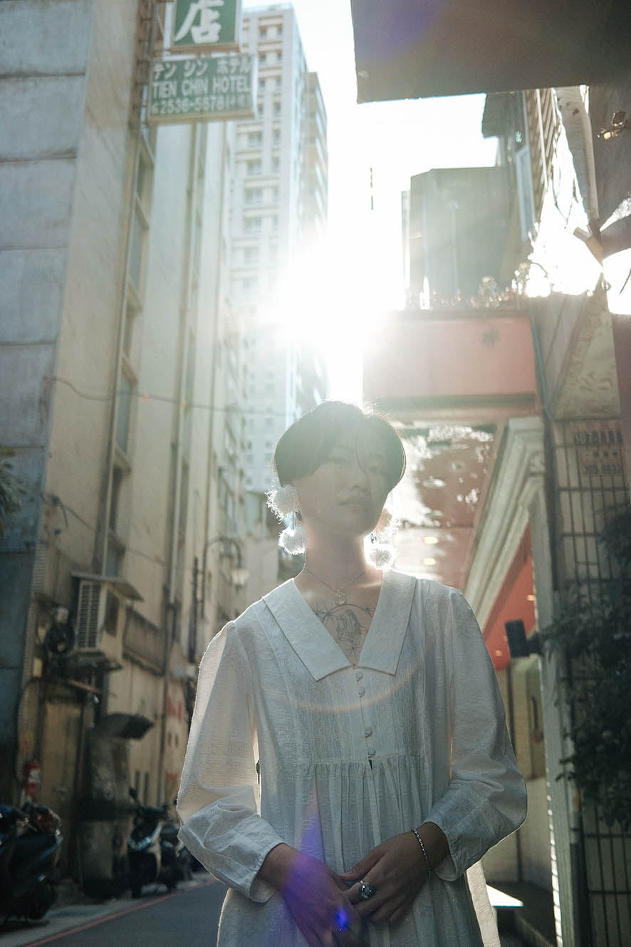 第一次就先從輕鬆一點的方式開始,討論好服裝以及拍攝方向,一切就自然推進。拍攝過程小亦問我會不會對鏡頭緊張,我說不會。其實我似乎是享受的,也許是渴望留下點什麼,好比是這個年齡的模樣,又或者是透過影像也紀錄了這個時期的際遇,後者是只有我自己才會想起的,因此鏡頭記錄下來的不僅僅是看見的粒子組合成的畫面,更多是粒子間夾帶的情感。